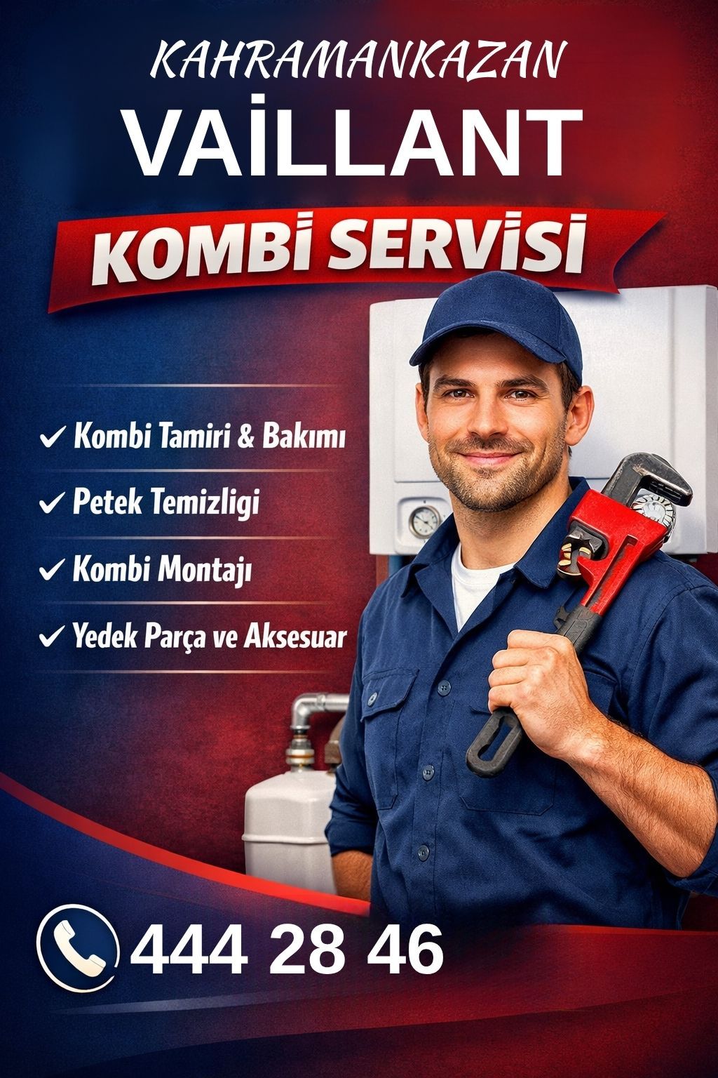 Kahramankazan Vaillant kombi servisi olarak, kombi kullanıcılarının ihtiyaç duyduğu tüm teknik destek hizmetlerini profesyonel şekilde sunuyoruz. Vaillant marka kombilerde sık karşılaşılan arızalara hızlı müdahale ederek, cihazınızın daha verimli ve güvenli çalışmasını sağlıyoruz. Deneyimli teknik ekibimiz sayesinde aynı gün servis imkânı ile mağduriyetinizi en aza indiriyoruz.